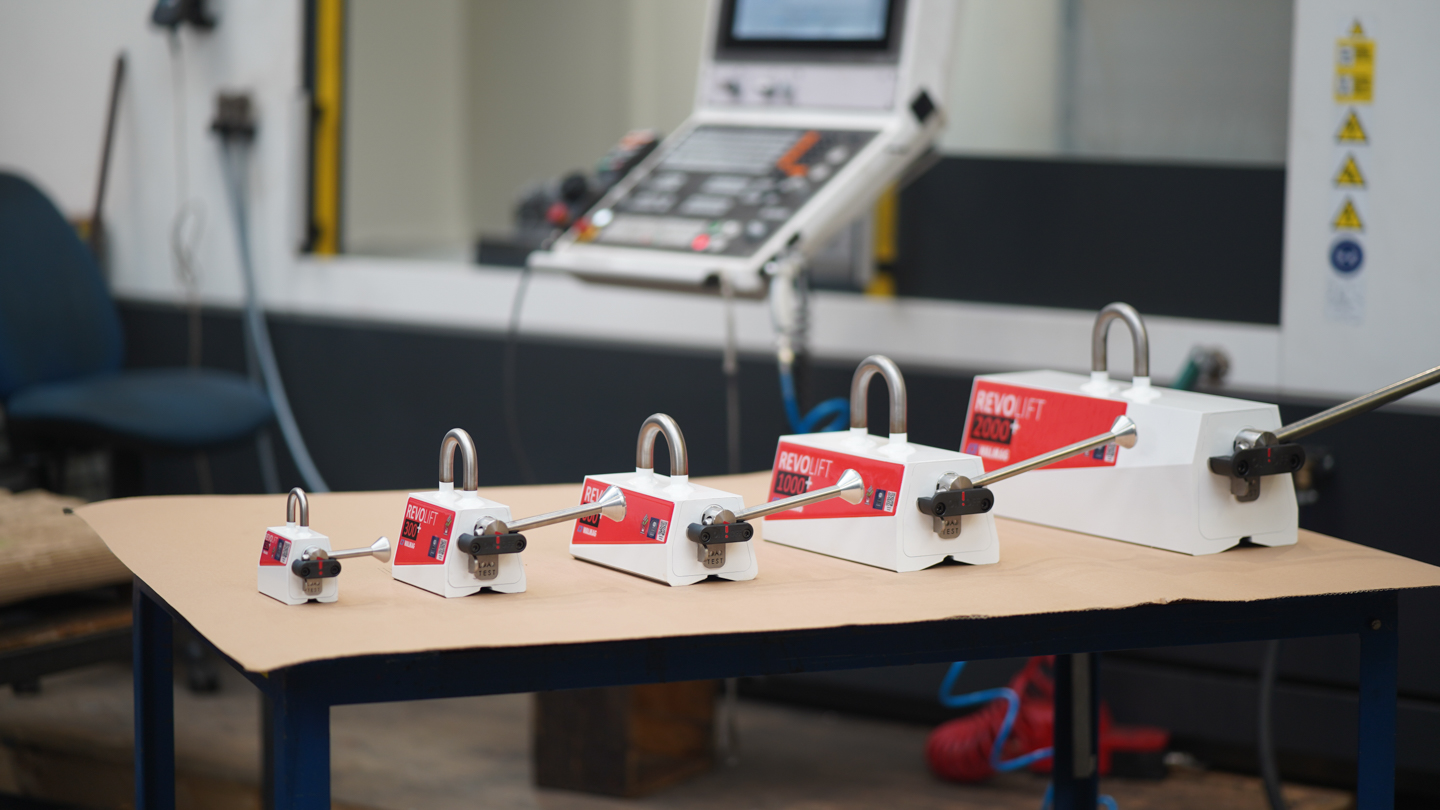 Eine weitere bedeutende Verbesserung bei Revolift ist die Position des oberen Griffs", der sich näher an der Oberseite des Magneten befindet. Mit dieser Konstruktion sind wir der Konkurrenz voraus. Der erste Vorteil ist eine bessere Ergonomie, da der Griff näher am Magneten liegt. Der zweite Vorteil besteht darin, dass der Griff im Durchschnitt zweimal so weit nach unten in ein H- oder U-Profil reicht und trotzdem in der EIN- oder AUS-Stellung arretiert werden kann.